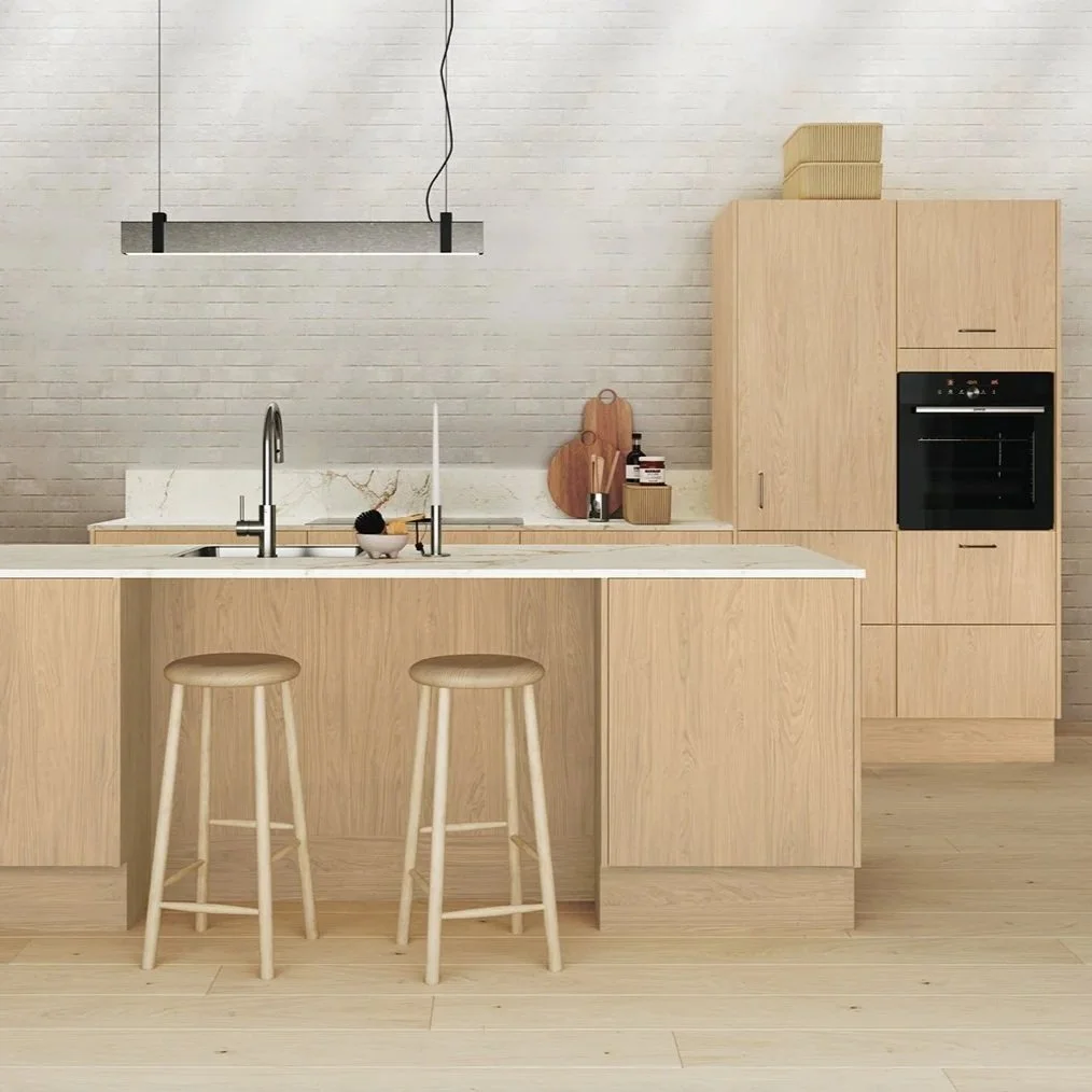 Ekslusive natur fronter satt sammen med Satin løsninger. Velg mellom natur eik eller mørk eik.